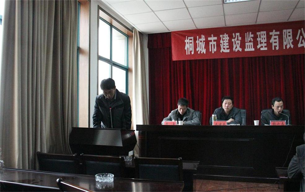 会议首先由汪海元总经理代表公司作了《改革创新、团结进取,绽放公司华彩篇章》的2013年年度总结报告,报告全面总结了2013年度监理公司取得的显著成绩,同时也实事求是指出了存在的问题,提出了2014年公司工作思路及措施。他说,2014年公司制度建设的主旋律依旧是改革和创新,继续以“深化改革、开拓创新、全面发展”为总体目标,公司将通过不断增强和推进各项制度改革,创新模式来实现公司平稳快速发展。同时,将通过规范公司管理、优化组织结构、提升人员素质、激活内部机制、拓宽经营渠道、探索经营模式等来全面提高公司制度建设、拓展业务范围、提升服务水平,同时明确提出了2014年的目标任务和工作方向:一是明确目标拓宽市场,合作共荣全面发展;二是抓好人力资源开发,实施人才战略工程;三是抓好在建工程管理,树立公司品牌形象;四是健全内部管理机制,提高企业经济效益;五是推进实施制度改革,强化制度的执行力。