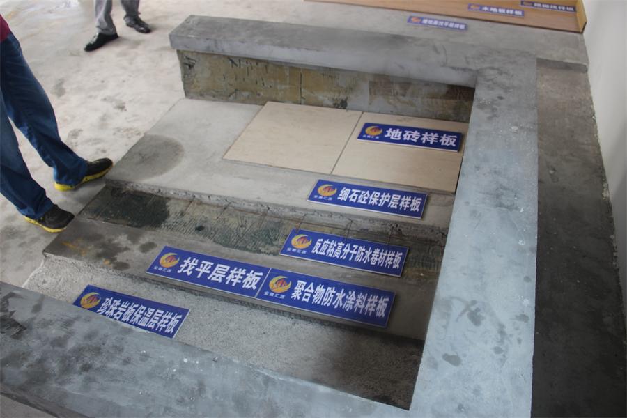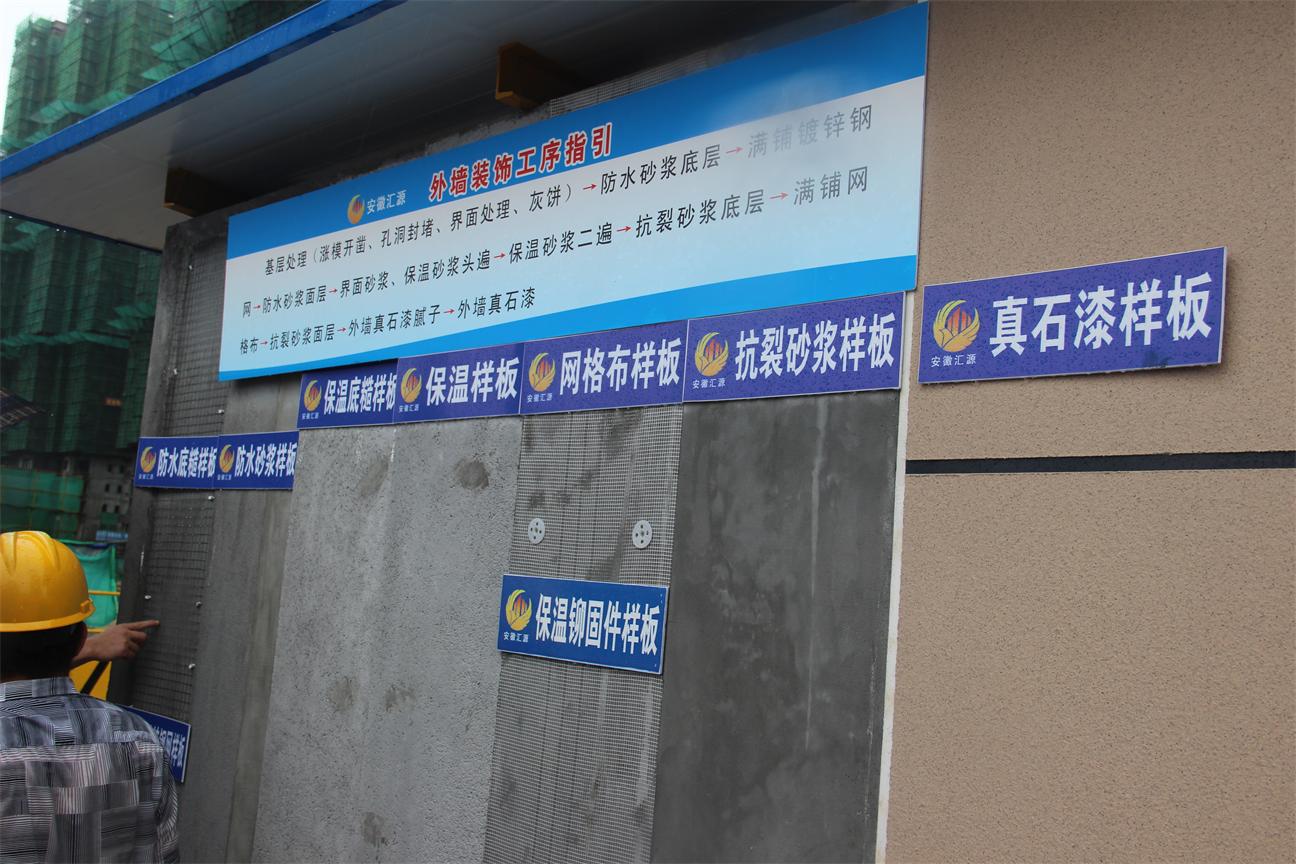 在现场,我们首先观摩到的是内墙地面顶棚平整、阴阳角顺直、布置合理的精装修样板套房;其次是样板工地精心制作的优质施工模型:厨卫地面和排水管安装工序、内墙装饰工序、建筑屋面工序、外墙装饰工序、强电箱样板、管线预留预埋、断桥铝窗等样品展示与操作工艺,于此同时还听取了施工单位技术负责人对以上各工序做法的详细讲解。