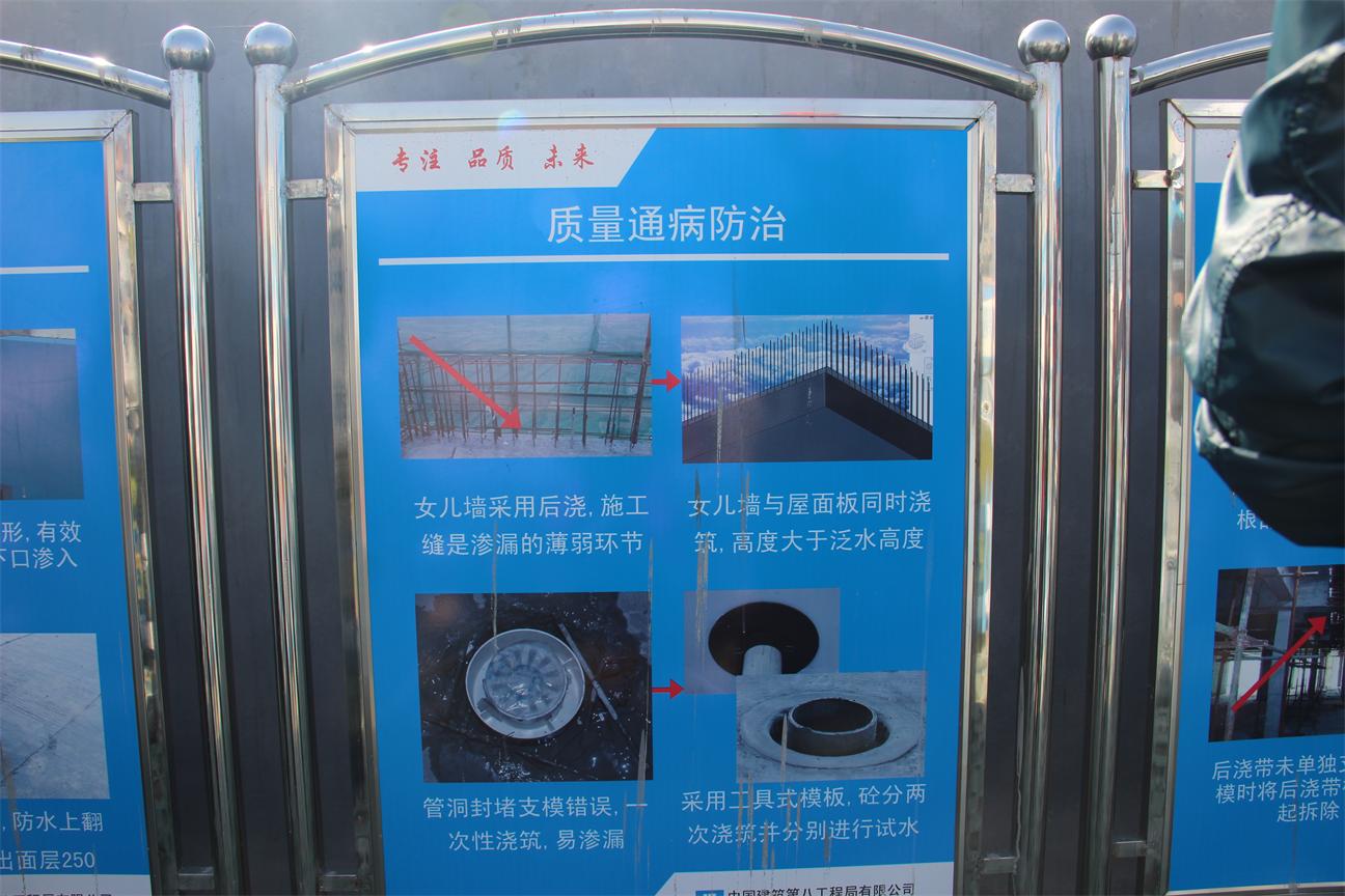 根据观摩行程安排,结合公司此次观摩的重点,我们认真、用心、细致地观摩学习了新工艺、新技术、新材料的实践运用;质量监管、通病防治实施等一些好的做法;如何加强施工现场的统筹管理、文明施工、安全防护以及施工现场难点的控制等方面。第一站我们来到了由中国建筑第八工程局有限公司承建的合肥市滨湖新区交通银行金融服务中心工程项目,该项目现场管理规范有序、安全文明施工措施得力、整个项目施工区域干净、整洁。在施工安全培训体验馆,几项安全体验几乎囊括了工地安全管理的全部内容,为工人提供了生动的模拟课堂,相比较口头交底,可以说工人在操作中记住安全程序、在恐惧中绷紧了安全弦。工程的每个通病都配有直观的照片和详细的防治措施标准。每一个新的、标准化的施工工艺都有图文并茂的交底,且制作标准化样板。第二站我们来到了合肥万科新城地产有限公司建设、南通卓强建设集团有限公司承建的蓝山花园二期三标工程项目施工现场,我们看到的是他们在施工中有效的过程质量控制。