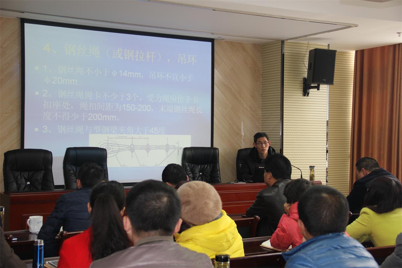 随后,程韩胜副经理从建筑施工扣件式钢管脚手架安全技术规范(JGJ130-2011)、高层悬挑脚手架搭设工艺及现场相关案例等9个方面进行了授课,培训内容全面,图文并茂,语言通俗易懂,具有很强的现实性、指导性和操作性。使与会人员进一步掌握了外悬挑脚手架搭设检查与验收的基本知识,提高了现场安全管理水平。