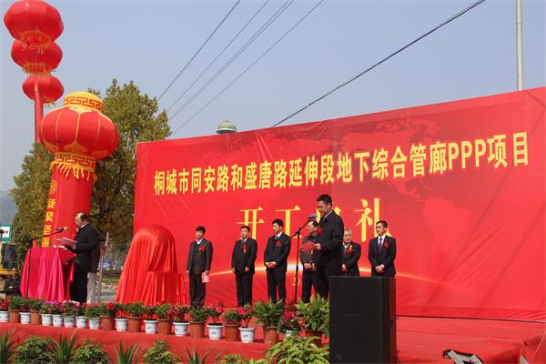 市委常委、副市长陈先锋在典礼上发表了热情洋溢的讲话,他指出,地下管廊工程的开工建设对桐城市发展有着极其深远的意义,他强调,要合各方之力,把工程建设好,管理好,惠及于民。