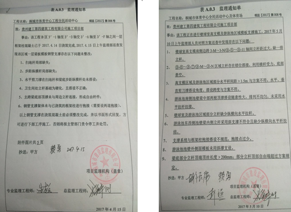 经监理部多次催促于2017年2月25日下午施工单位组织高大模板方案专家论证,专家提出方案应按论证意见重新修改补充后方可通过论证。而当时现场架体已在搭设,但搭设不规范。随后项目部对方案重新进行了修改,同时也要求班组严格按照该方案实施。