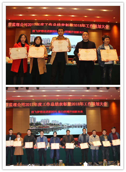 会上还对获得2017年度先进个人及监理部、科室进行表彰,先进集体及个人代表分别作了交流发言。