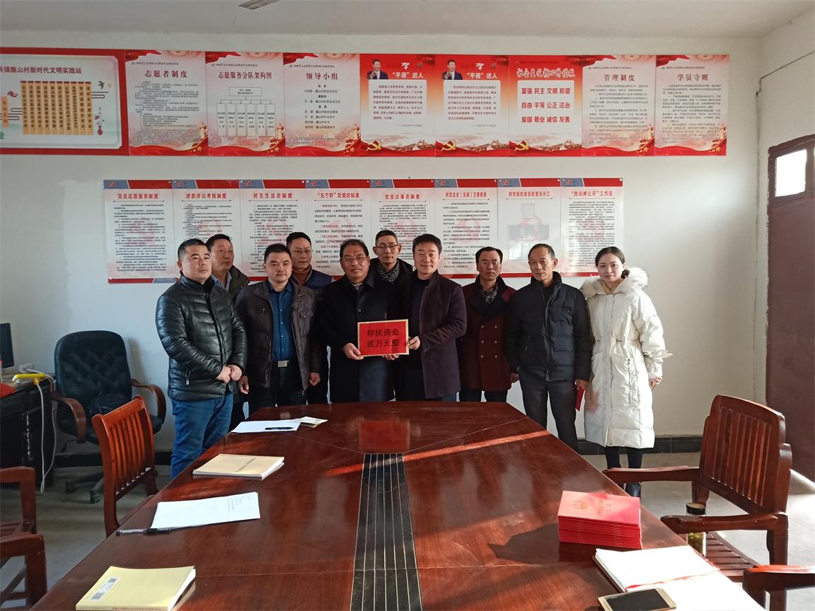 在甑山村村委会,公司党支部书记高旭东主持召开结对帮扶工作会议,会议主要宣读了市法制办和市政府下发的《关于做好春节期间法制宣传教育工作的通知》、《禁火令》通知,向甑山村发放《中华人民共和国宪法》读本共计20册。随后甑山村王书记对2019年甑山村完成工作情况进行了简单介绍,就目前面临的村支部重建资金困难等问题进行了叙述。会议最后,公司总经理汪海元对甑山村2019年的工作业绩给予了肯定,他指出,甑山村在自主创收方面超额完成任务,体现了村两委干部团结奋进的工作精神,对于村委会重建项目,汪总代表公司提出,对该项目的前期设计、预算和后期的监督管理工作的支出将给予全力的扶助。