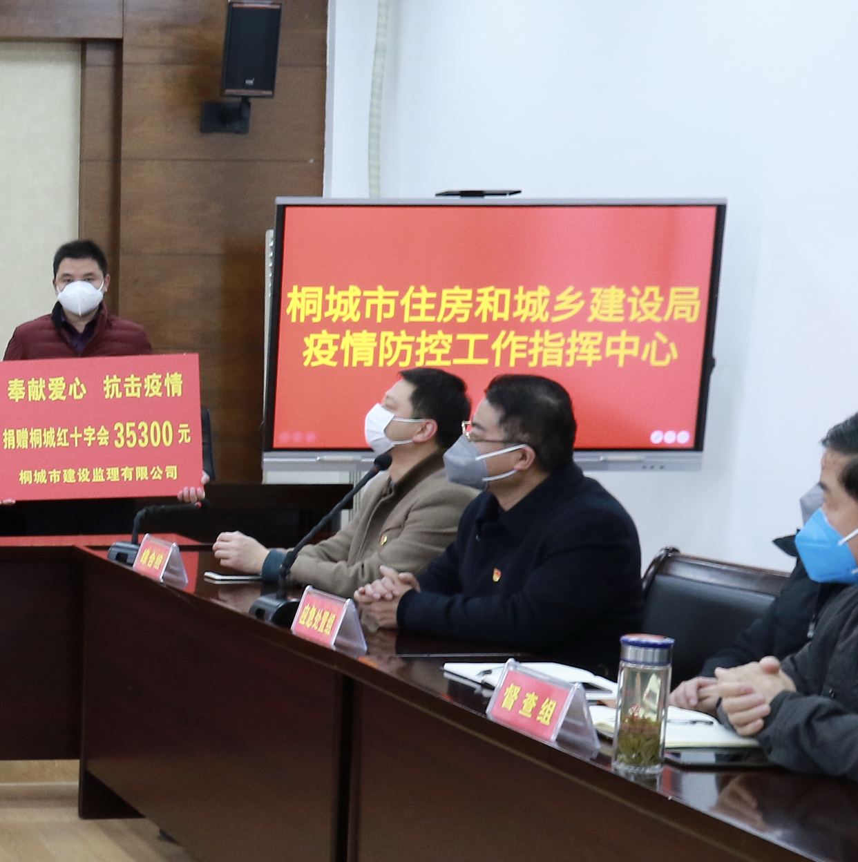 2月10日,接上级主管部门关于“汇聚住建爱心,助力抗击疫情”的爱心捐款倡议后,市监理公司广大员工积极响应,纷纷解囊,通过微信转账等方式,仅用三个小时时间就筹集了资金3.53万元,其中公司61位员工捐款共计1.53万元,单位2万元由住建局统一捐往桐城市红十字会用于此次疫情,为疫情防控阻击战贡献了我监理人的一份力量。