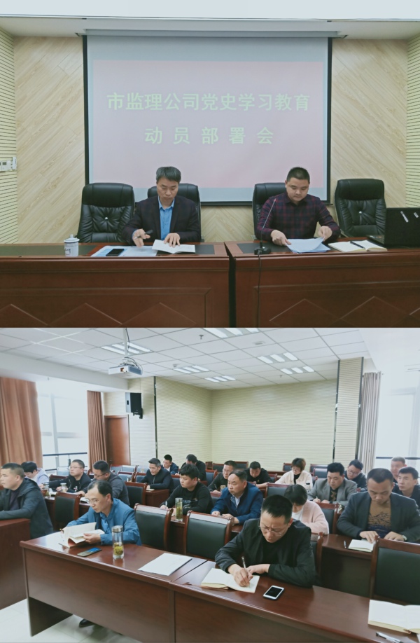 3月29日下午,市监理公司召开党史学习教育动员会议,深入贯彻习近平总书记在党史学习教育动员大会上的重要讲话精神,落实中央、省、市委决策,对全公司党史学习教育工作进行动员部署。公司班子成员、二级机构主要负责人、所有党员同志参加会议。会议由党支部书记高旭东主持,总经理汪海元作动员讲话。