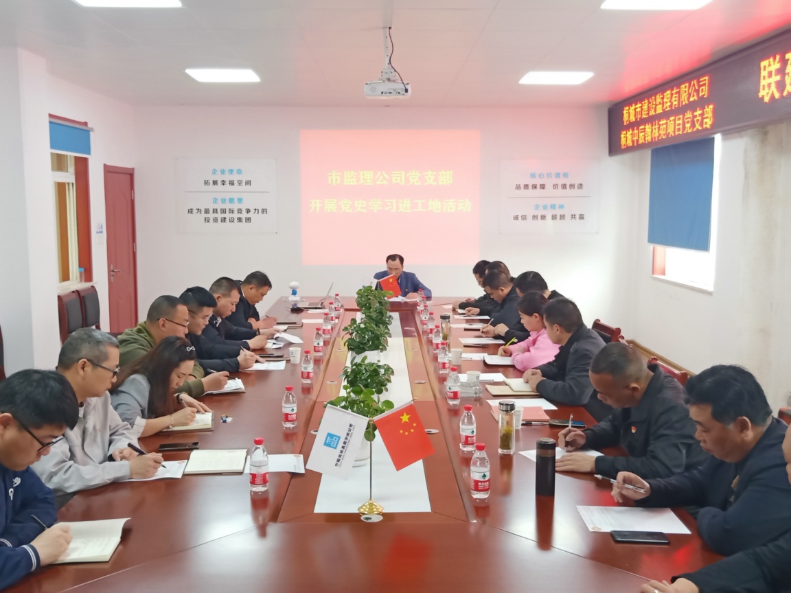为庆祝中国共产党建党100周年,进一步增强党员的爱国爱党情怀,2021年4月25日,市监理公司党支部到中辰翰林苑项目党支部开展联建交流党史学习宣讲进工地活动。