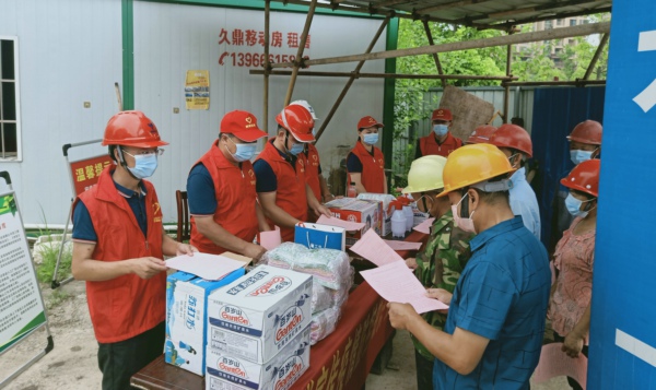 活动中,大家还为工人们送上公司特意准备的口罩、消毒液、毛巾、矿泉水等防疫、降温用品并叮嘱他们高温天气里要注意防暑,养成良好的卫生习惯,增强防病意识、加强自我防护,保证身体健康和施工安全。