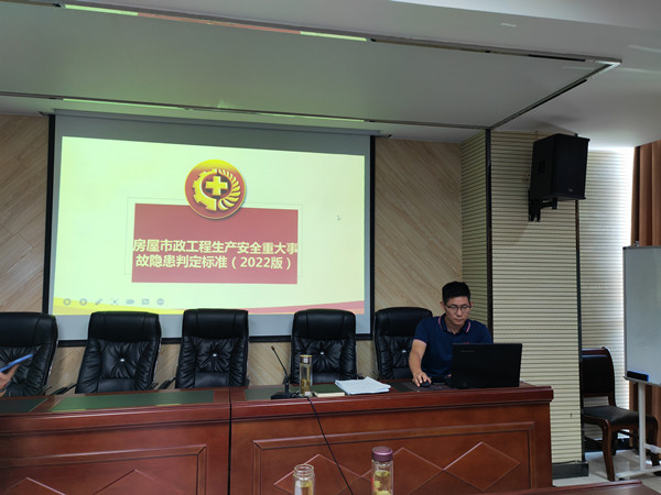 程韩胜副经理带领与会人员学习了《房屋市政工程生产安全重大事故隐患判定标准(2022版)》,从标准的制定背景和主要内容进行解读。要求以重大隐患排查为重点,突出建筑起重机械、基坑工程、模板工程及支撑体系、脚手架工程、拆除工程、暗挖工程、钢结构工程等危大工程,以及高处作业、有限空间作业等高风险作业环节,“逐企业、逐项目、逐设备”精准排查和消除重大隐患,确保施工现场安全风险可控。