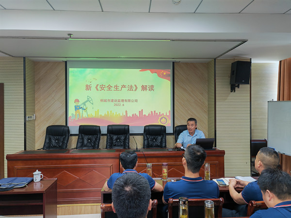汪海元总经理围绕全国第21个安全生产月活动主题“遵守安全生产法,当好第一责任人”进行专题授课。课上,简要阐述了新《安全生产法》出台的背景、意义,紧扣生产经营单位全员安全责任制、安全风险分级管控和隐患排查治理双重预防机制以及“三管三必须”三个方面,系统回答了谁是安全生产第一责任人?第一责任人的职责有哪些?安全生产管理机构以及安全生产管理人员职责是什么?他要求,全体员工要思想认识全面提升,站在讲政治的高度,深刻认识安全稳定工作的极端重要性;各监理人员要各司其职,严格落实安全生产责任制;要狠抓措施落实,形成安全管理新常态。他强调,安全责任重于泰山,公司上下要把建筑工地安全放在首位,以如履薄冰、如临深渊的态度,落实好各项安全防范措施,推动安全生产工作见行见效,确保企业安全稳定发展,为党的二十大胜利召开创造良好安全环境。