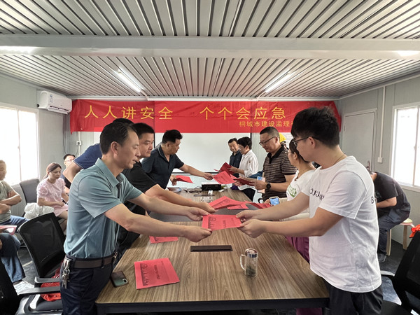 为全面深入贯彻安全生产月“人人讲安全,个个会应急”主题活动,消除建筑施工安全隐患,筑牢安全防线,让项目监管人员通过自觉遵守安全相关法律规范来开展日常安全施工建设。6月12日上午,党员活动日,公司党支部组织党员一行人来到幸福春天保障房建筑工地,扎实开展安全生产月宣传活动。