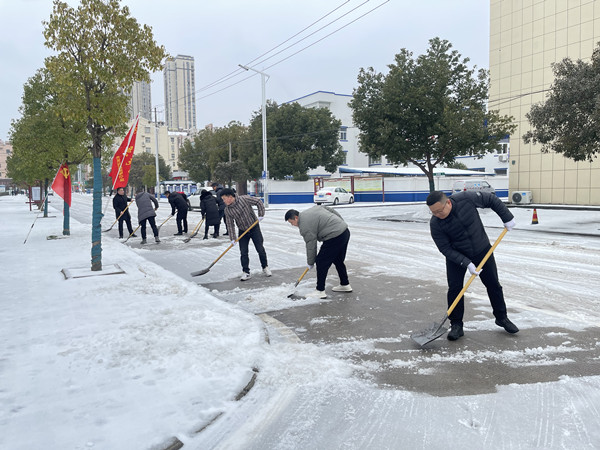 “晚来飞雪如扯絮,阡陌纵横路似镜。雪临文都增许雅,路滑道阻步难行。”2月21日,受强冷空气影响,本市出现强降雪和寒潮天气。为尽快消除积雪对出行的安全隐患,2月22日一早,我公司迅速组织党员干部、及全体员工开展了“扫雪除冰”活动,对文渊路及办公楼出入口的积雪和冰层进行了清理。