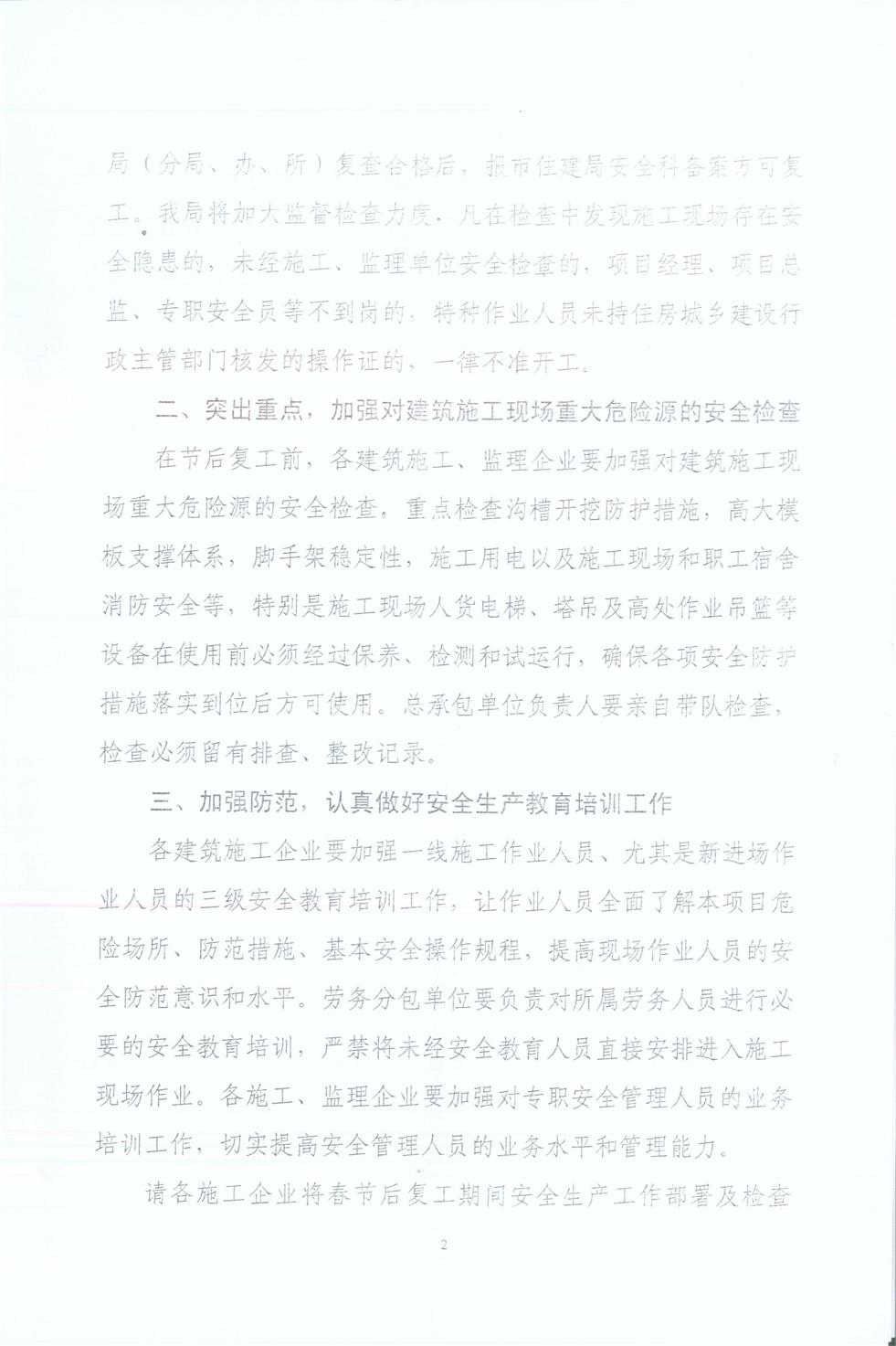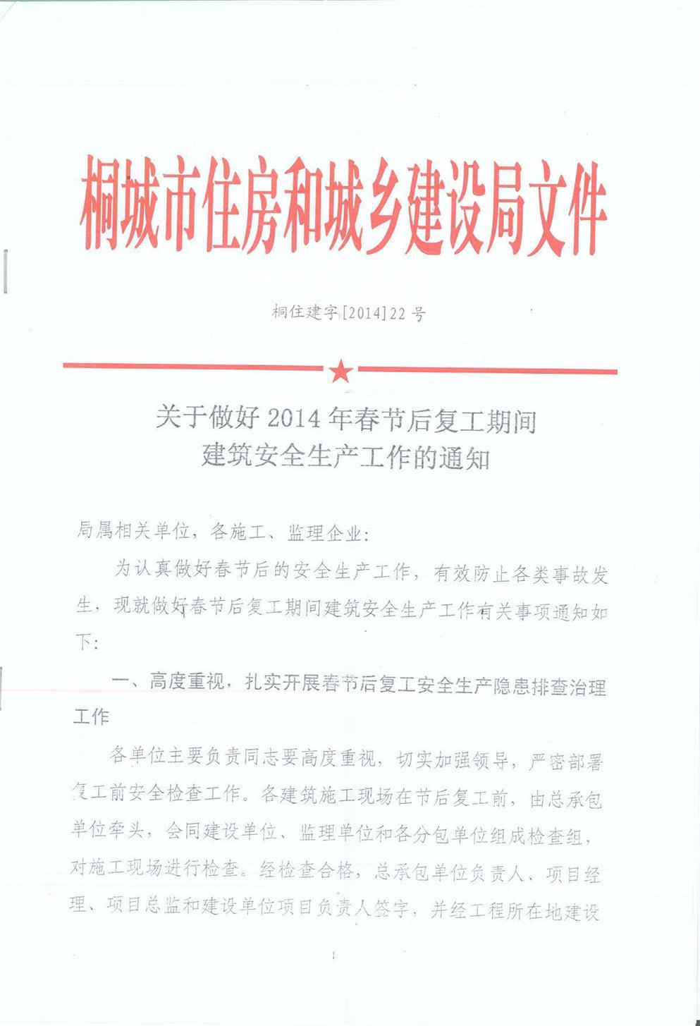 关于做好2014年春节后复工期间建筑安全生产工作的通知