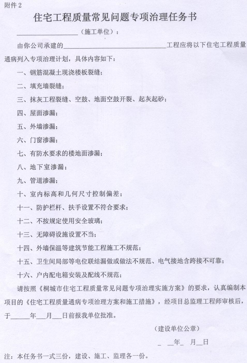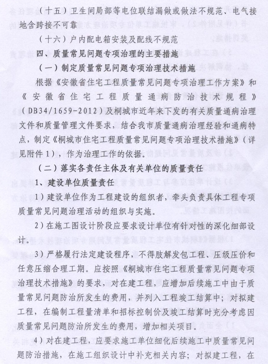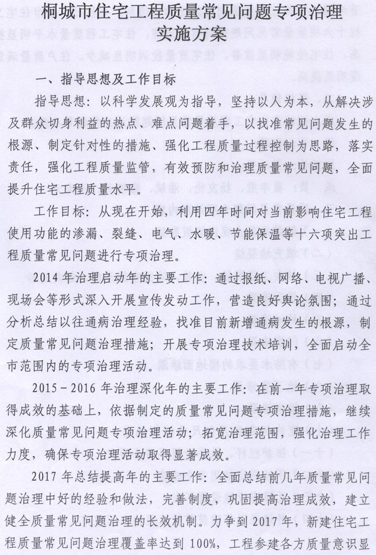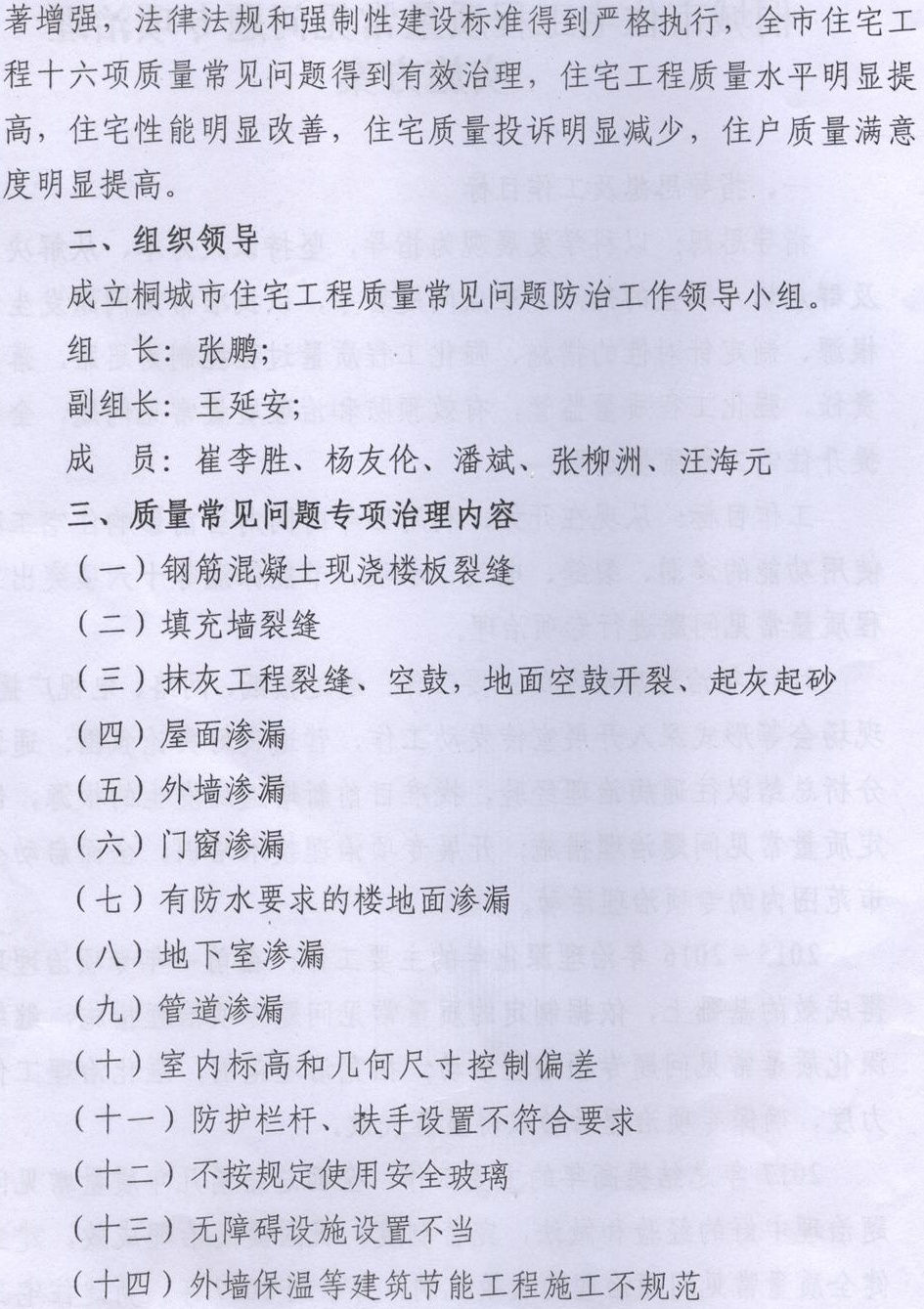 (局发)关于印发《桐城市住宅工程质量常见问题专项治理实施方案》的通知