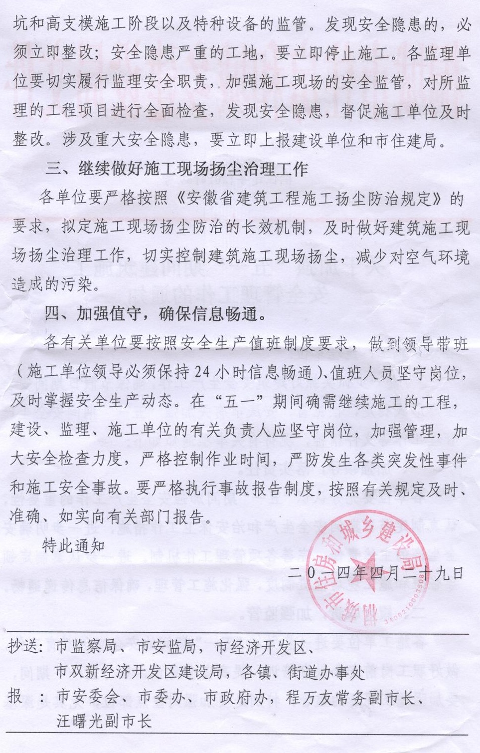 (局发)关于加强“五一”期间建筑施工安全管理工作的通知
