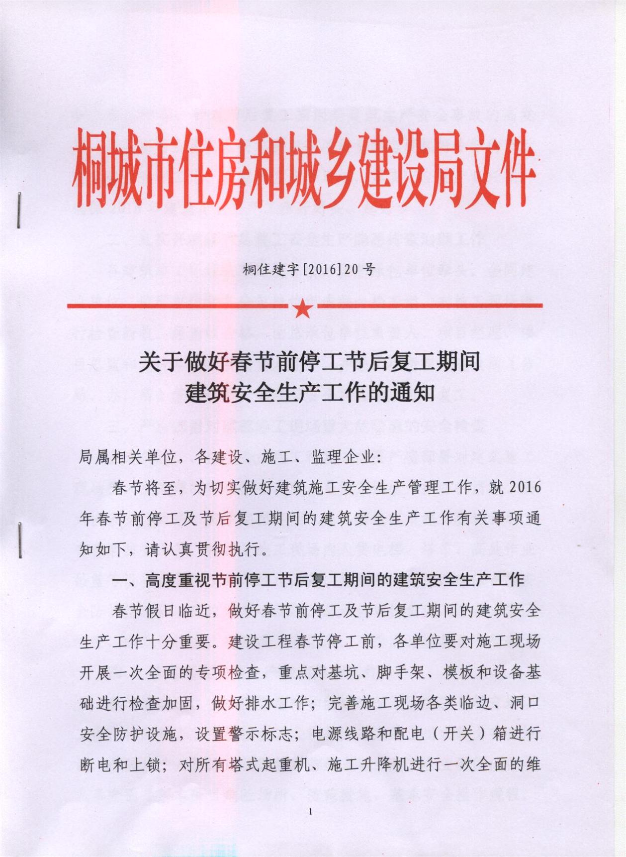 (住建局)《关于做好春节前停工节后复工期间建筑安全生产工作的通知》