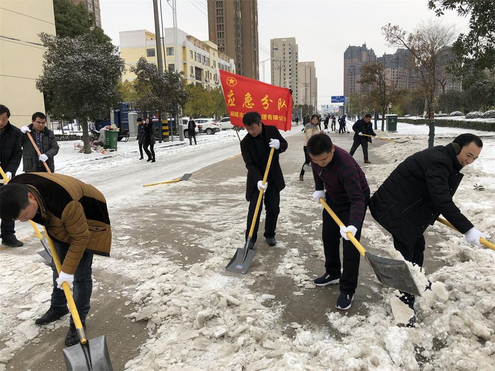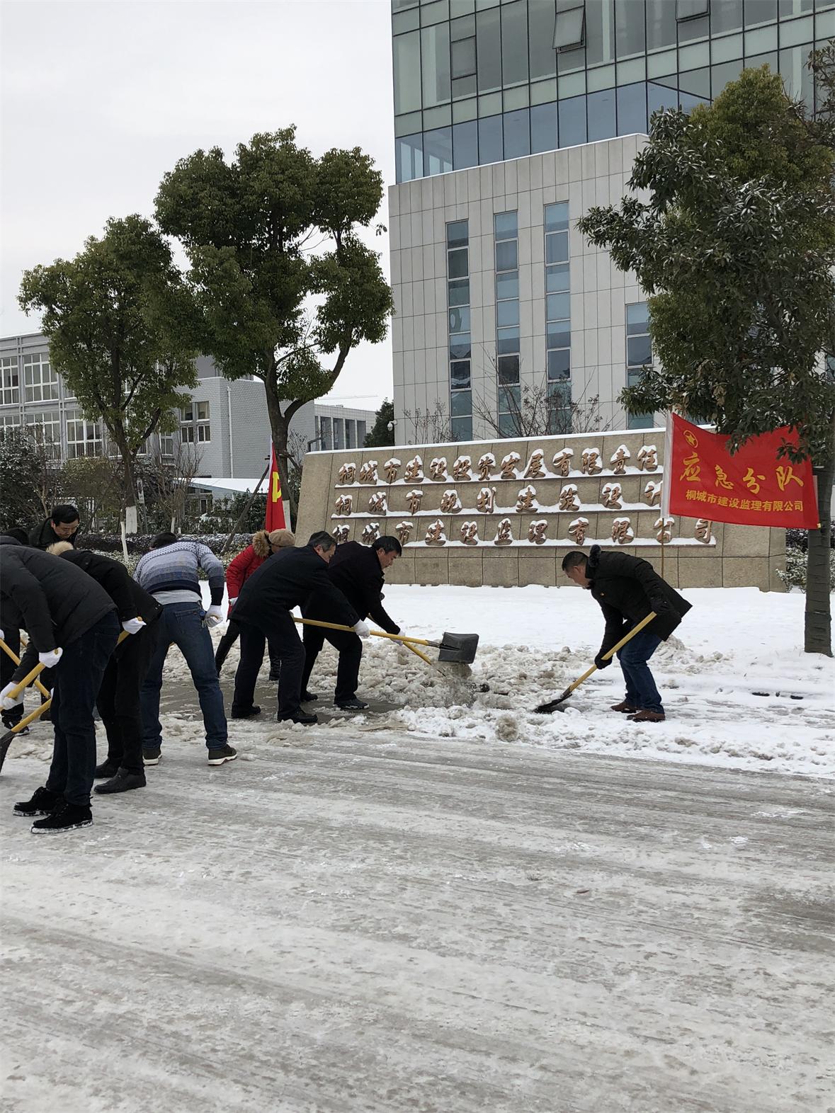 2018年1月24日,桐城市迎来了今冬第一场大雪,夜雪初霁,整个桐国银装素裹,分外妖娆,但同时也为市民的出行带来了诸多不便,为确保桐城市交通安全和群众出行方便,1月26日早上7时许,在公司总经理汪海元的带领下,市监理公司由班子成员、党员、预备役人员等组成的近50余人的应急分队,队员们迎着寒风雪花,挥舞着铁橇,经过2个小时的清扫,将文二路的积雪和冰渣清扫了300余米,同时与管廊项目部组成突击队对盛百路段、望溪路口的积雪和冰渣进行清扫,大家你追我赶,齐心协力,配合默契,铲的铲、推的推、扫的扫,干的热火朝天,不亦乐乎,忙碌的身影在寒风中构成了一道亮丽的风景,也为桐城市市民的出行方便略尽绵薄之力。