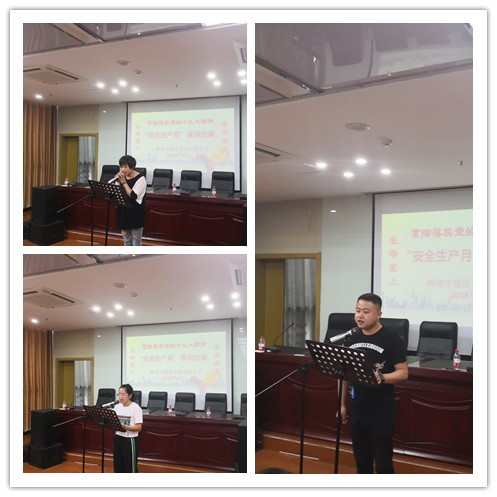 为深入贯彻落实党的十九大精神,进一步增强职工的安全意识,营造安全生产管理氛围,市监理公司于6月22日组织开展以“生命至上、安全发展”为主题的全国第17个安全生产月演讲比赛活动,市安监局党组成员、副局长徐中祥,市公管局党组成员黄庭刚,市规划局副局长齐志刚,市委宣传部讲师组副组长、理论科科长潘子翰,驻市住建局纪检监察组副组长王军挺等五位同志莅临本次比赛现场并担任比赛评委,公司全体员工参与了此次活动。会议由张小志副经理主持。
